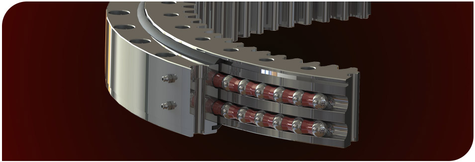 Çift sıra küresel bilyalı döner tabla yatakları, iki bilya hattı sayesinde tek sıra tasarımlara göre çok daha yüksek eksenel, radyal yük ve moment kapasitesi sunar. Ø300 mm’den Ø5000 mm’ye kadar içten dişli, dıştan dişli veya dişsiz seçeneklerle üretilebilen bu çözümler, ağır hizmet uygulamalarında güvenilir performans sağlar.